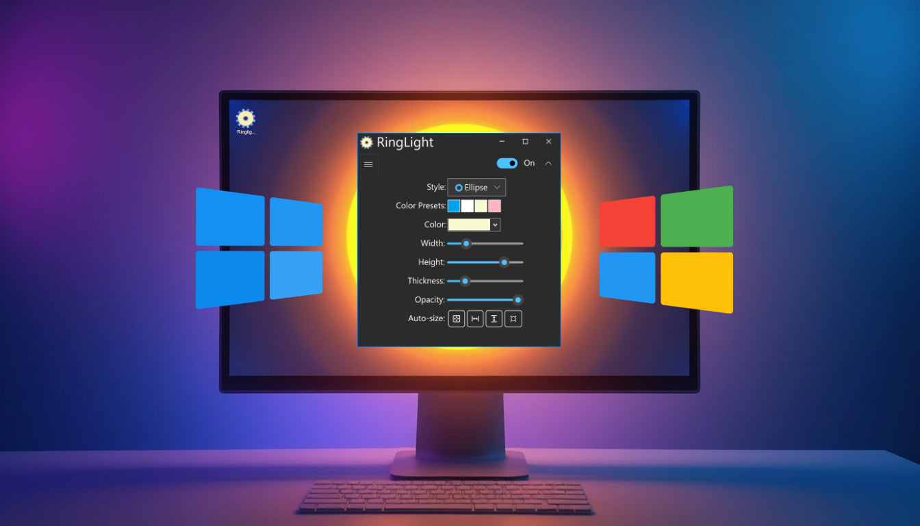 It's so easy to use, just apply a preset color or customize the light color to meet your needs. Adjust the thickess and size on the control panel and move Ringlight anywhere on your screen. Your monitor becomes the ring light.